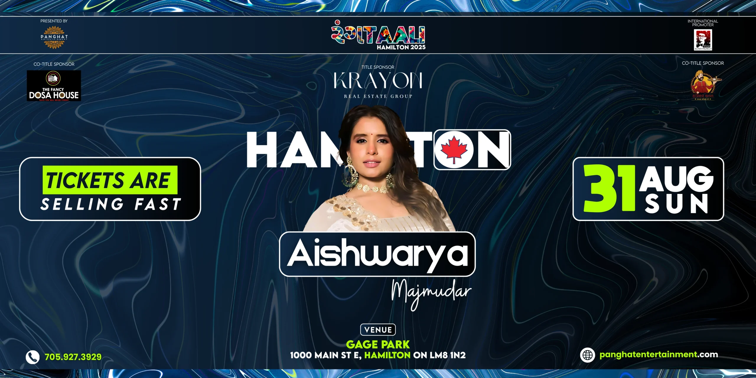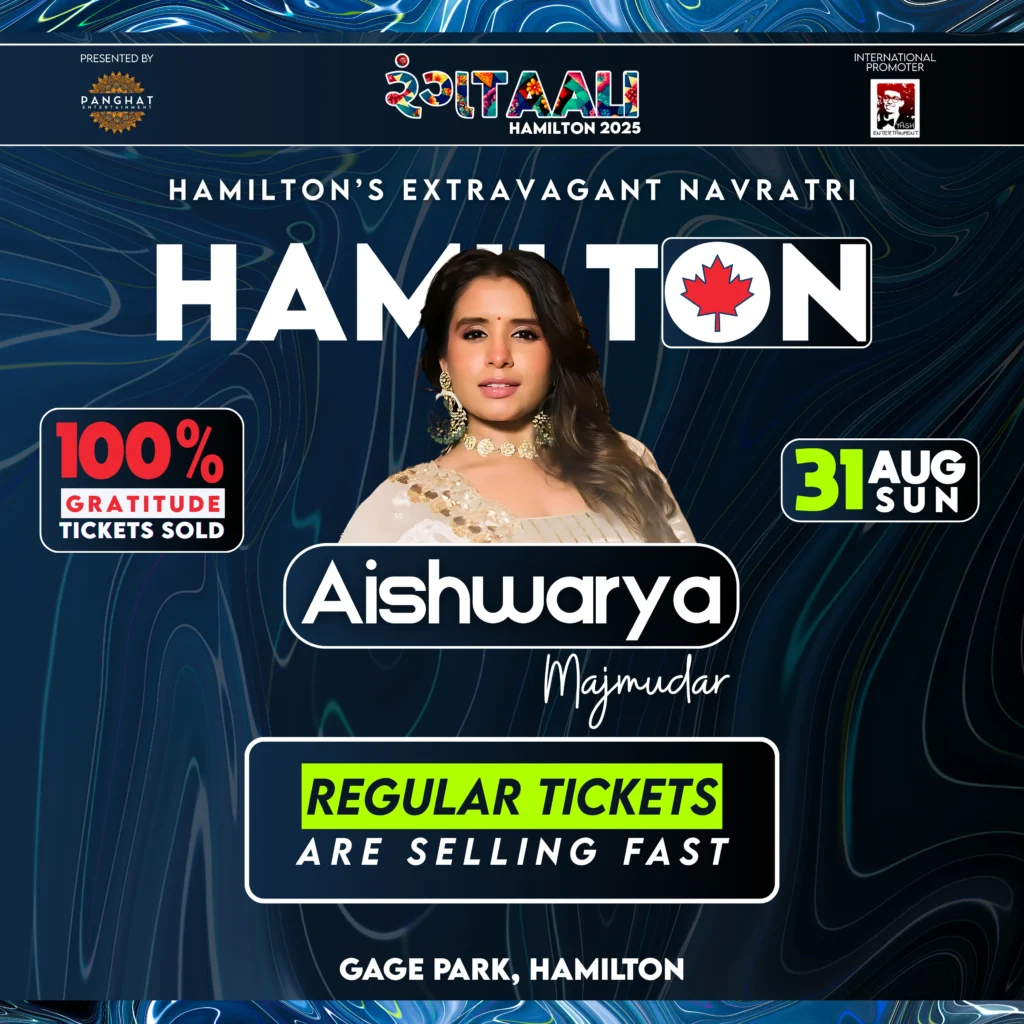 Panghat Entertainment proudly presents Rangtaali Hamilton 2025, featuring the sensational Aishwarya Majmudar – one of the most loved voices in the Garba world. Get ready for an evening filled with vibrant rhythms, cultural pride, and electrifying energy.